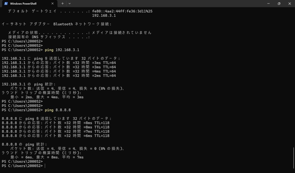 なぜそこ宛にPingを打つのかというと常時稼働している信頼性の高いサーバーであり、インターネット接続の基本的なテストに適しています。